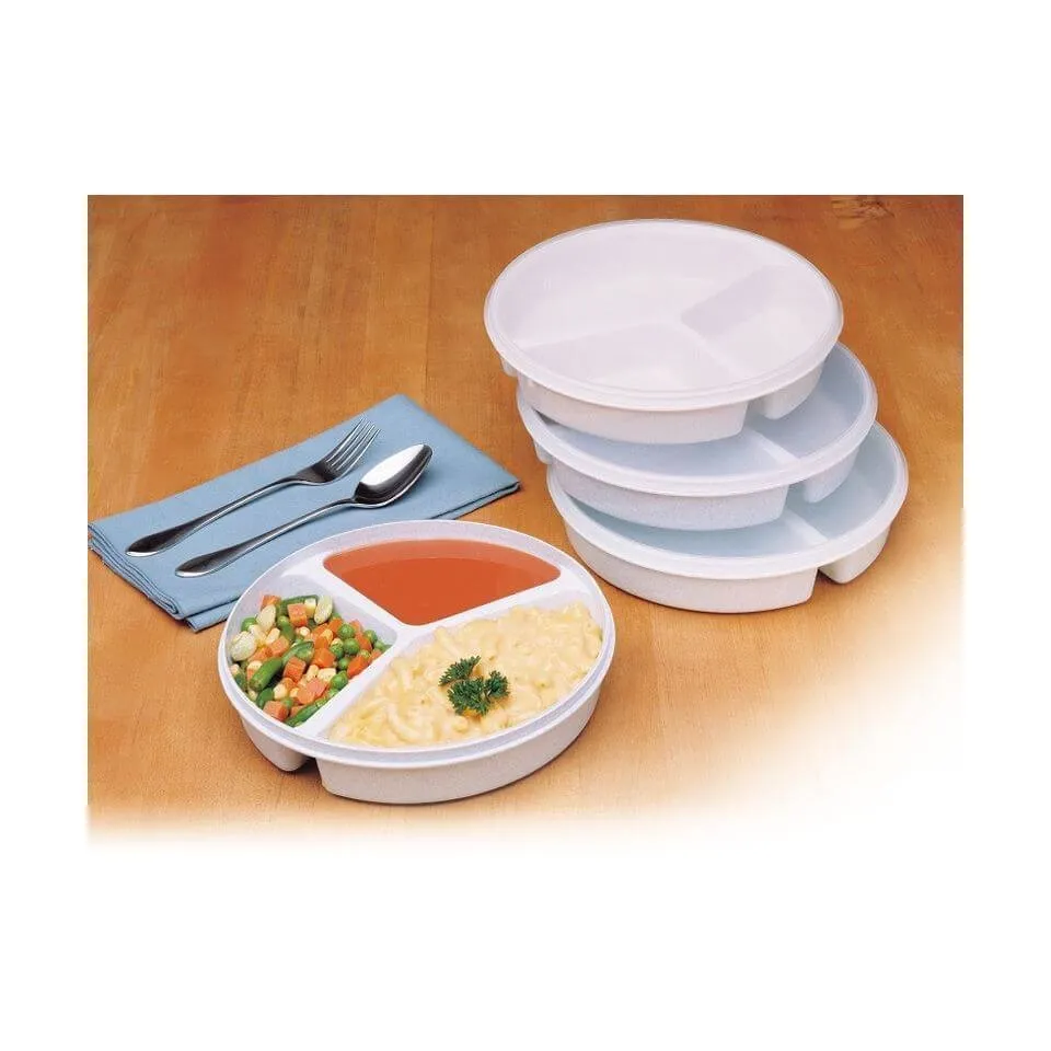 Avec cette assiette empilable, vous disposez de 3 compartiments afin de séparer les aliments : 1 grand de 375 ml et 2 petits de 200 ml. Garantie micro-ondes et lave-vaisselle, sauf couvercle. Livrée avec un couvercle transparent. Coloris sable. Rebord droit de 3,8 cm. Diamètre 20 cm.
