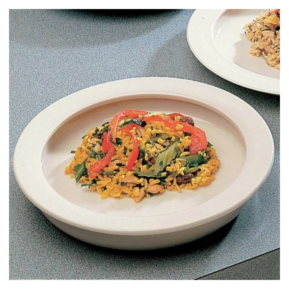 Rebord d'assiette haut idéal pour manger d'une seule main et éviter que les aliments tombent Le dessous de l'assiette est équipé d'une mousse antidérapante Lave-vaisselle jusqu’à 80°C En polypropylène Spécificités techniques Ø ext. assiette 23cm Larg. Rebord 2,5cm Haut. Rebord 1,3cm Micro-ondable Oui Lave-vaisselle Oui Top vente Oui photo non contractuelle