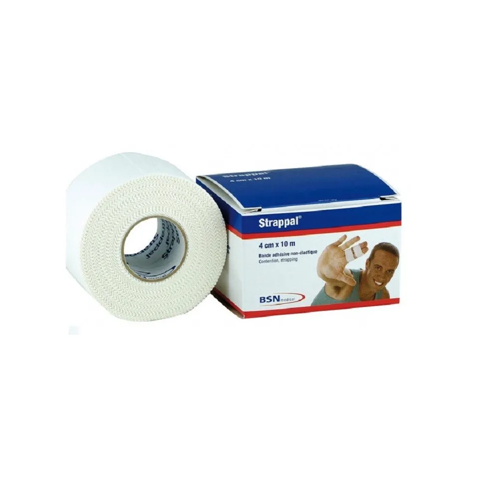 Cette bande adhésive non élastique 10mx4cm est indiquée pour la contention articulaire rigide et la traction adhésive continue. Ses caractéristiques sont : - Sans latex. - Bords dentelés : sécable à la main. - Support en fibranne inextensible. - Adhésivité importante et prolongée. - Masse adhésive sans latex.