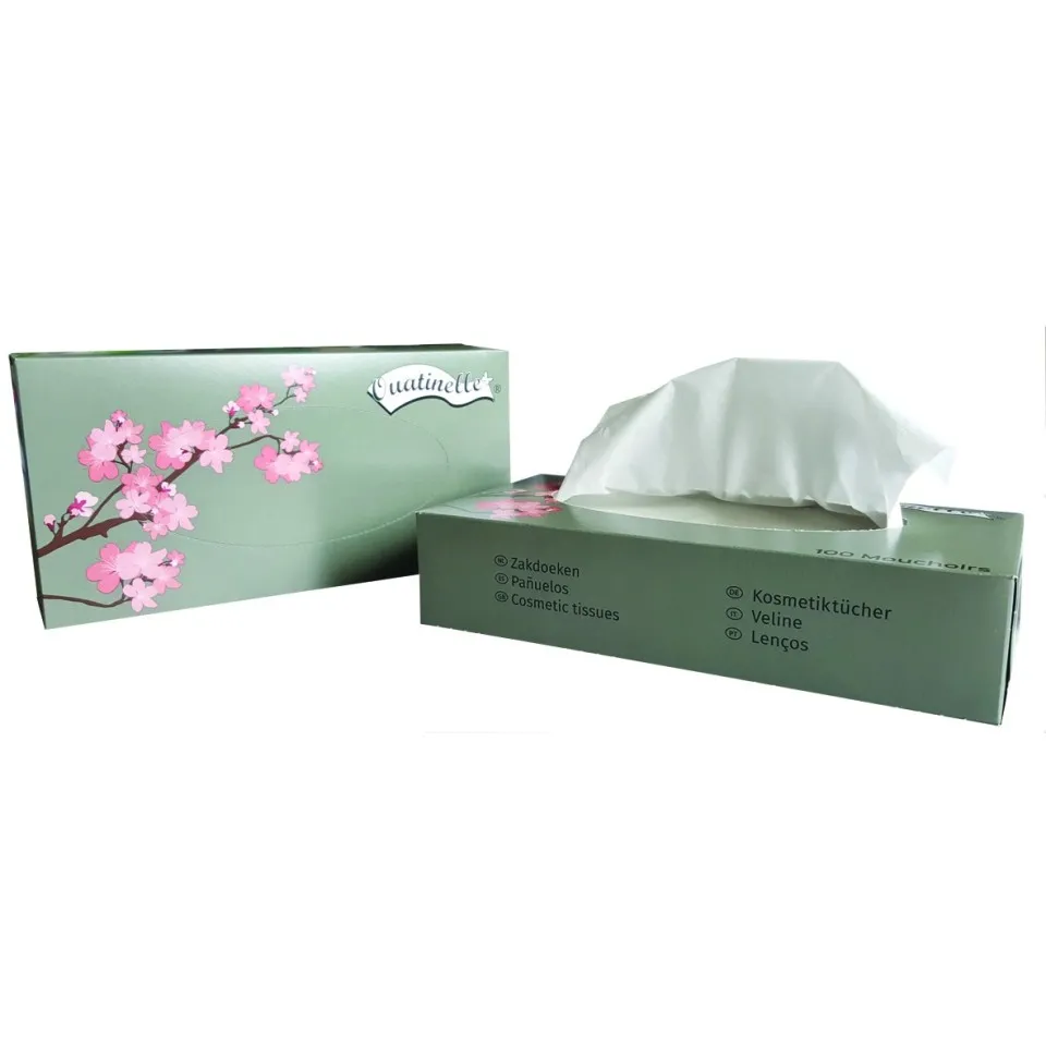 Boîte distributrice contenant 100 mouchoirs en papier jetables