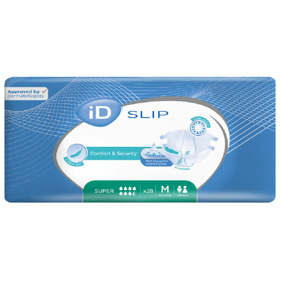 Le change complet iD Expert Slip Super taille M est idéal pour l’incontinence modérée à sévère, avec une absorption fiable et un confort optimal.