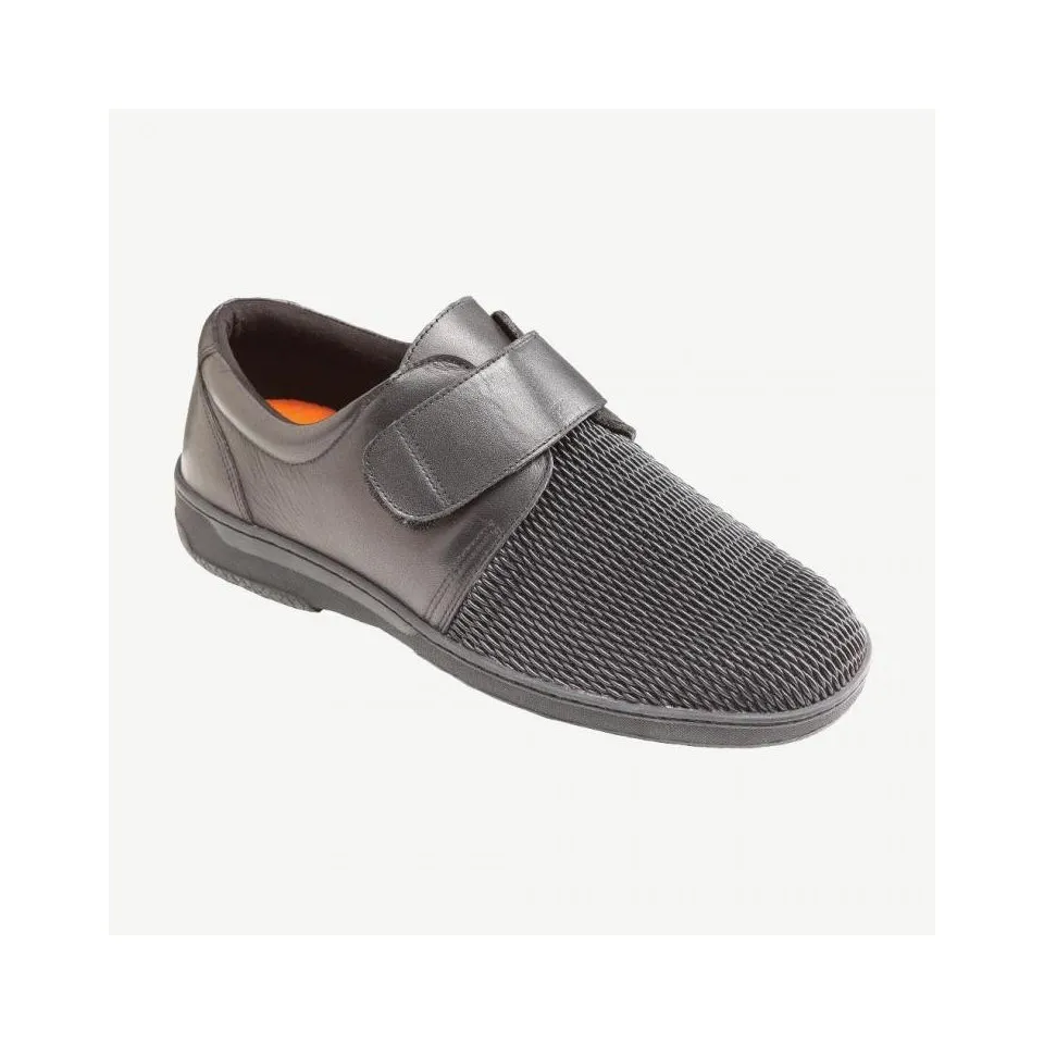 Vous souffrez d'une déformation de l'avant pied du type Hallux valgus, orteil en griffe, ... ou une augmentation du volume du pied ? Notre chaussure MILO permet de vous chausser et vous soulager avec soin et discrétion. Sa semelle intérieure amortissante et amovible permet un confort au quotidien. Avant-pied large (matière extensible) Semelle intérieure amovible Semelle à mémoire de forme.
