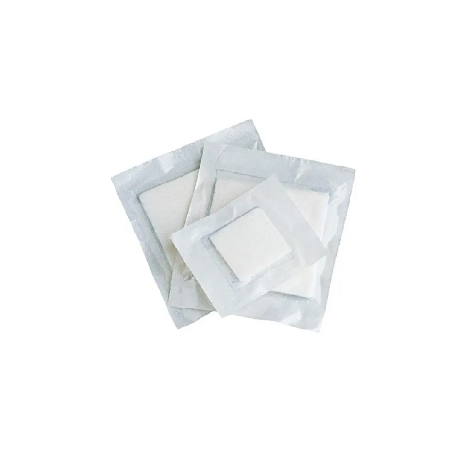 Boite de 50 blisters de 5 compresses stériles non tissées. Gaze hydrophile de coton 17 fils, pour soins et préparation de pansements. Dimension 10x10cm 8 plis.