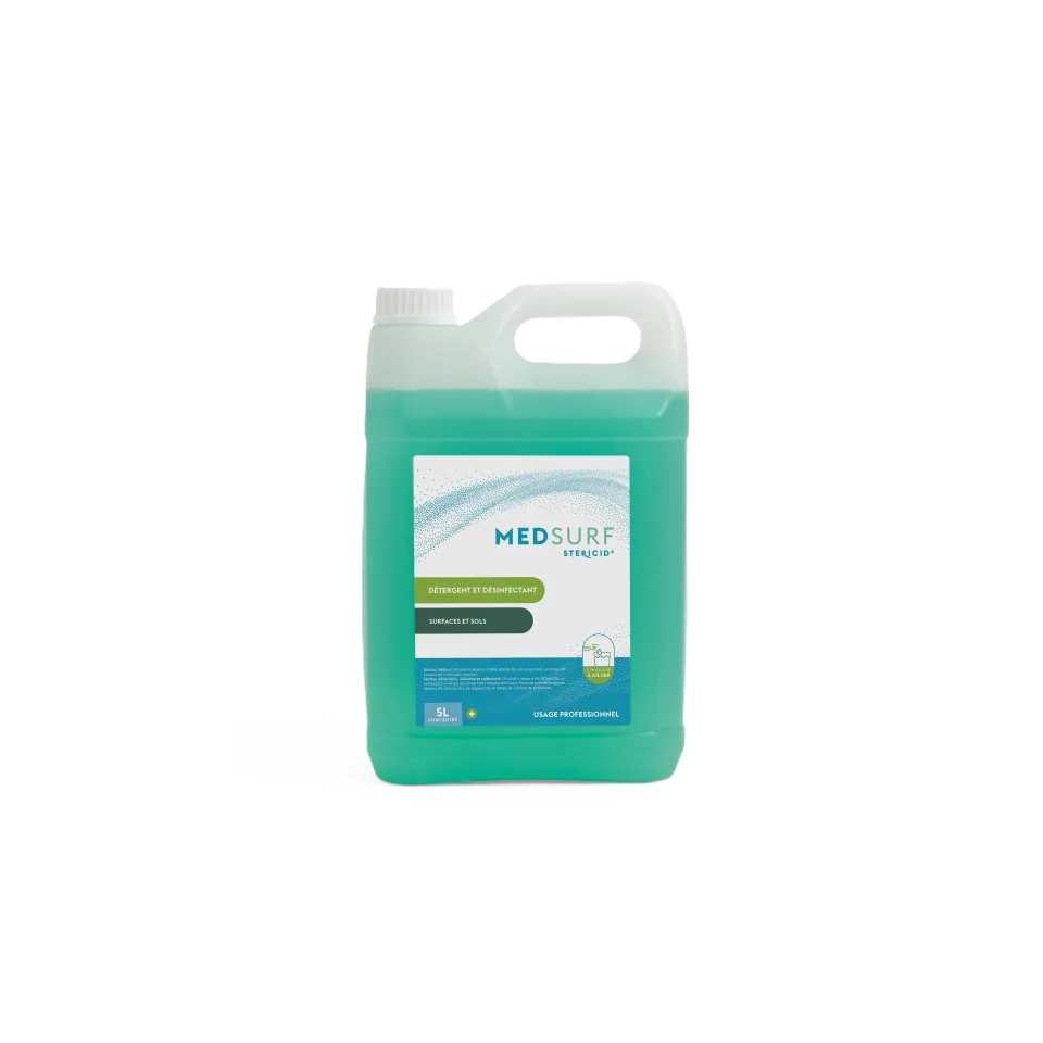 Le détergent désinfectant neutre Medsurf permet de nettoyer et désinfecter efficacement les surfaces tout en respectant les matériaux grâce à sa formulation neutre.
