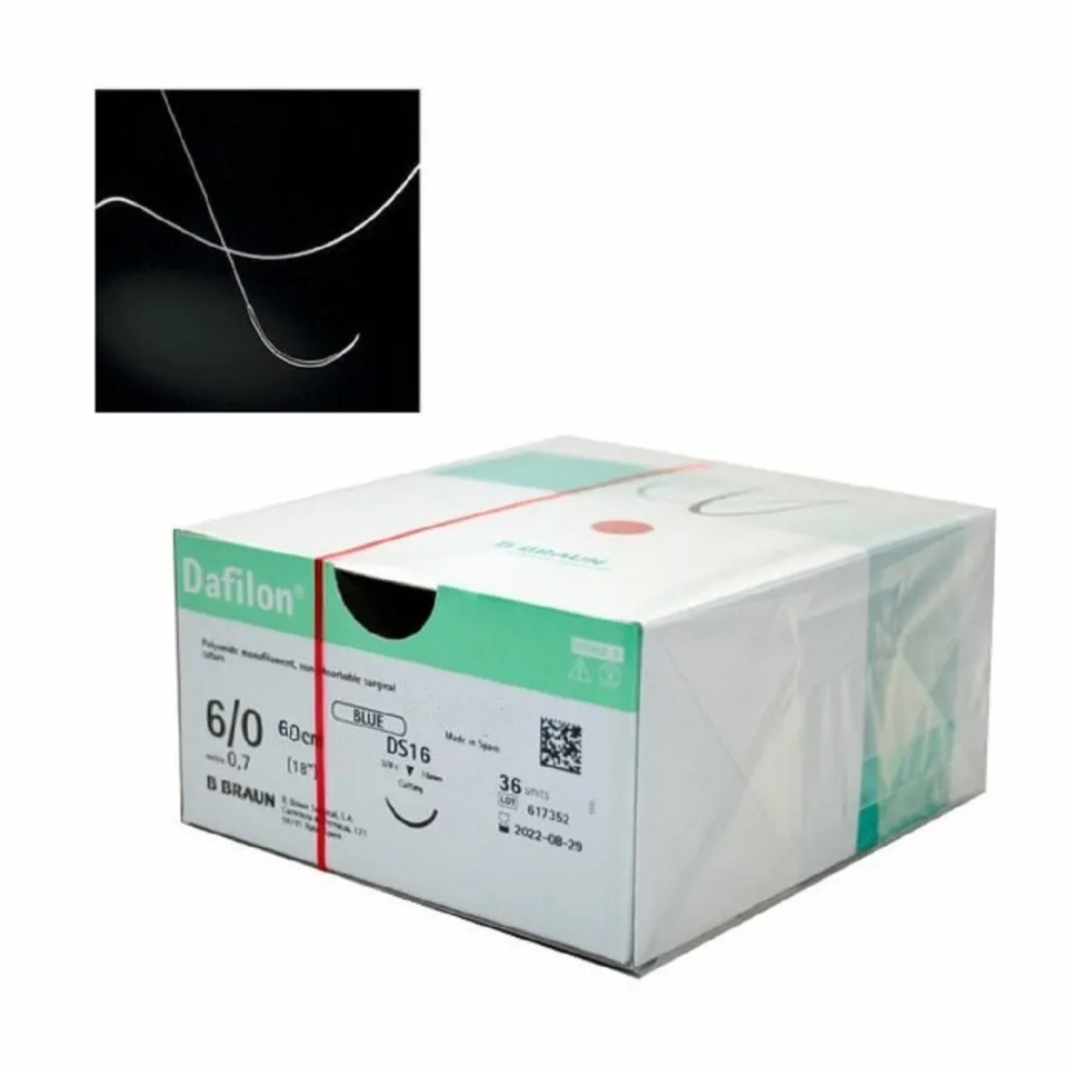 Fil chirurgical monofilament non résorbable en polyamide Product Picture Enlargement CW Dafilon® Dafilon® est un fil chirurgical monofilament non résorbable synthétique composé de polymères de polyamide 6/6.6 (bleu), polyamide 6.6 (noir) ou polyamide 6 (incolore). Dafilon® bleu et Dafilon® incolore sont indiqués pour la fermeture de plaies superficielles et la chirurgie plastique. Dafilon® bleu est également utilisé en neurochirurgie. Dafilon® noir est utilisé pour les interventions ophtalmiques et microchirurgicales. Comme toute suture de nylon, bien que non résorbable, une hydrolyse progressive de la suture peut se produire, entraînant une diminution de sa résistance dans le temps. Avantages Souple, aisé à manipuler et nouer Bon passage intra-tissulaire Excellente histocompatibilité Indication Fermeture cutanée Chirurgie plastique et reconstructrice Microchirurgie Ophtalmologie
