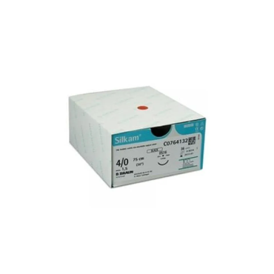 Fils à sutures non résorbables SILKAM , suture soie tressée enduite noire. Ces fils existent en 3/0,4/0,5/0 .Longueur 75cm.