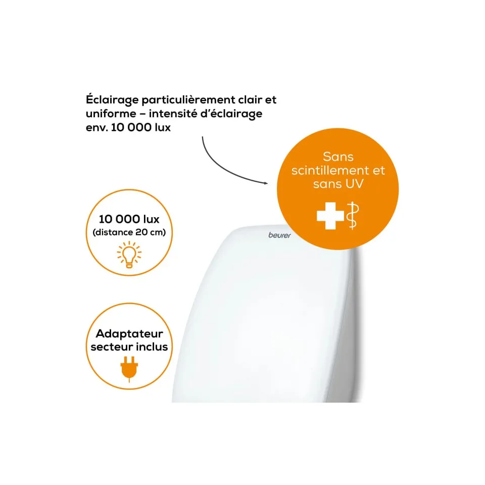 Puissance lumineuse : Émet une lumière blanche intense, jusqu'à 10 000 lux à une distance optimale, pour une efficacité maximale en un temps réduit.
