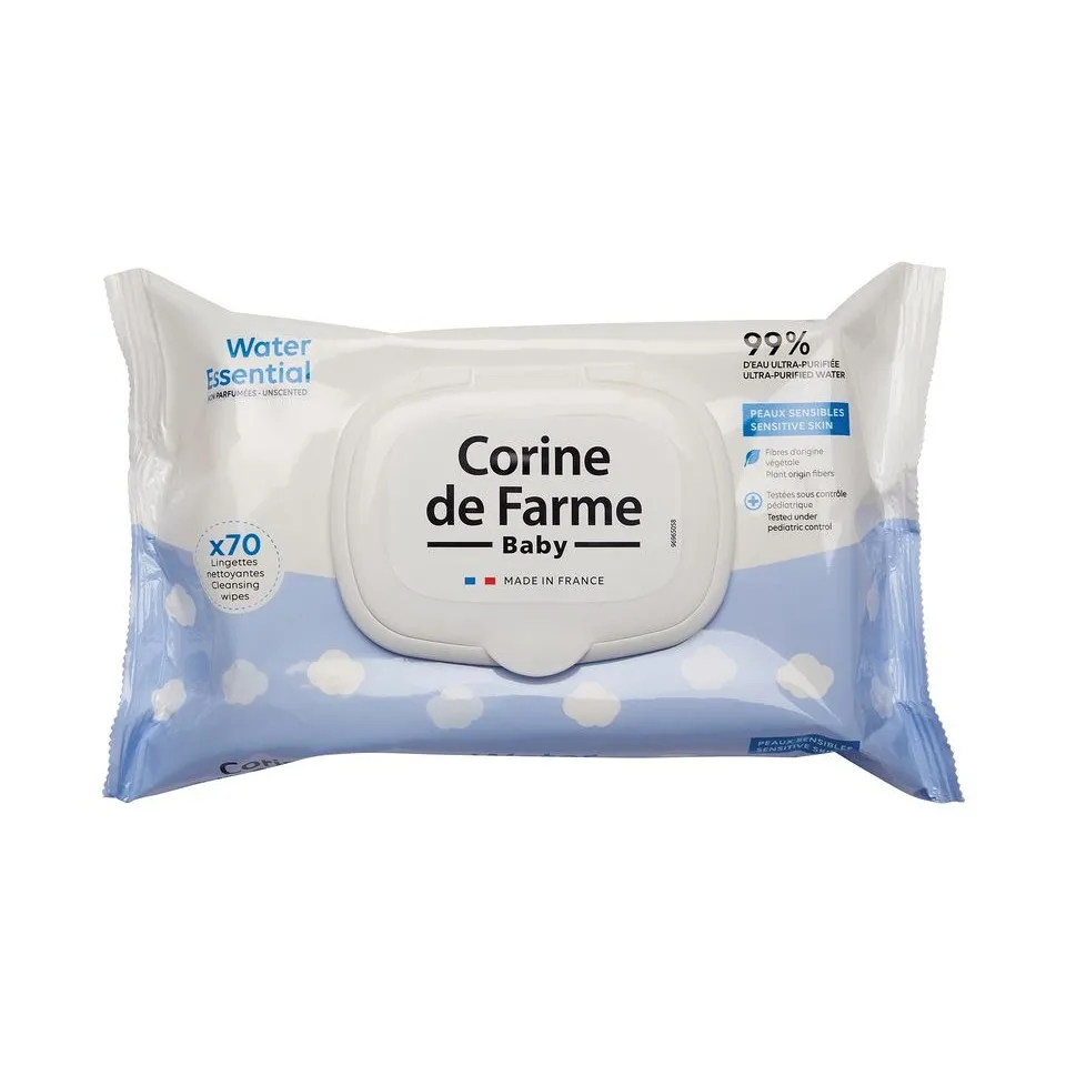 Les lingettes bébé Corine de Farme sont spécialement conçues pour nettoyer en douceur le visage, le corps et les fesses de bébé.