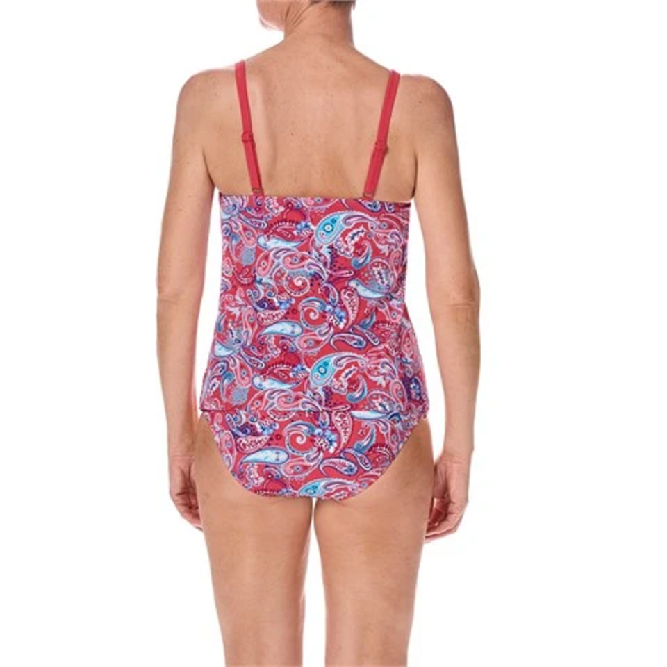 Quand le confort rencontre le style, découvrez notre haut de bikini sans armatures Barbados avec son motif cachemire durable en LYCRA® XTRA LIFE™. Brassière avec poches intégrées et des bonnets légèrement rembourrés pour maintenir une prothèse mammaire ou une prothèse partielle en toute sécurité, dissimulent efficacement les irrégularités. La technologie unique Amoena Wave Seam est une finition spéciale se trouvant au niveau de la bande sous poitrine de la brassière intérieure. Elle offre un maintien latéral supplémentaire pour les prothèses et compléments mammaires (incluant la solution Aqua Wave) garantissant une stabilité optimale pendant les activités aquatiques. Son décolleté polyvalent offre deux choix : une couvrance plus haute pour masquer les imperfections de la peau ou une coupe plus basse pour un décolleté plongeant. Profitez des différentes options port : droites ou croisées. Parfaites pour un style sans effort. Des bretelles arrière réglables combinées à des bretelles avant plus larges, réduisent efficacement la pression sur les épaules. Complétez votre ensemble Barbados avec le bas de bikini assorti, sous réserve de disponibilité.