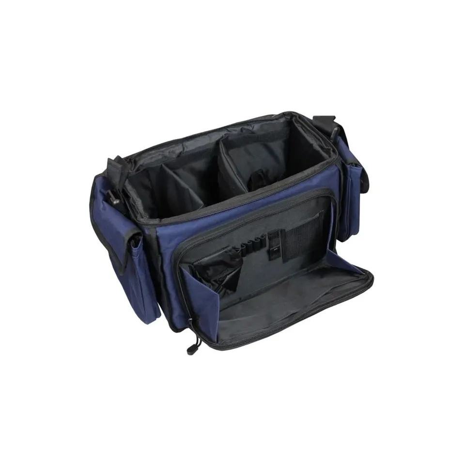 Mallette en polyester bleu et intérieur en PVC. Ouverture sur le haut avec une fermeture éclair. L'intérieur est composé de cloisons amovibles. Dimension : 42 x 20 x 29cm.Poids : 1.5Kg.