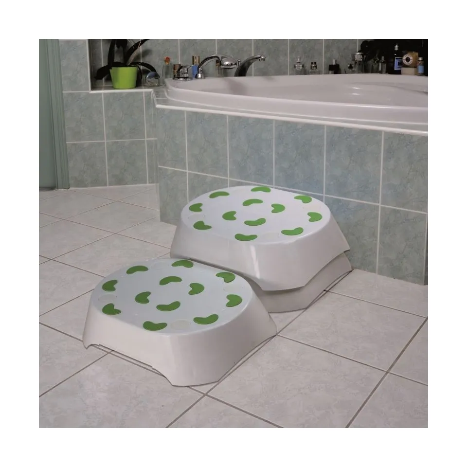 La marche d'accès au bain Moorea est idéale pour faciliter l'entrée et la sortie de la baignoire en apportant un gain de hauteur de 12 cm. Son design offre une stabilité exceptionnelle, renforcée par une surface texturée antidérapante et des pads en caoutchouc vert. Cela permet de garantir une sécurité accrue lors de l'utilisation. En empilant plusieurs marches, vous pouvez augmenter la hauteur à 18,5 cm, offrant ainsi une flexibilité maximale.