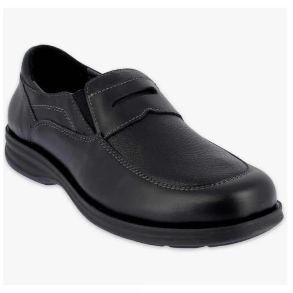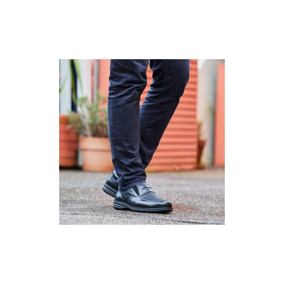 Découvrez Hugo, la chaussure au style mocassin qui allie confort, santé et stabilité. Conçue avec des matériaux de qualité supérieure et dotée de technologies innovantes, Hugo offre un confort et une stabilité maximale pour les pieds fragiles. Hugo est une chaussure extensible grâce à une matière technique à l’aspect cuir, ce qui lui permet de s’adapter parfaitement à la morphologie du pied. Elle est également saine grâce à sa doublure ON STEAM, une matière anti-transpirante, anti-microbienne et thermorégulatrice qui garde vos pieds au frais et au sec toute la journée. Hugo est idéal pour les personnes avec des pieds larges ou pour des personnes souffrant de déformations de l’avant-pied et les porteurs de semelles sur mesure. Elle est recommandée pour les personnes souffrant de pathologies telles que l’hallux valgus, les œdèmes, les orteils en griffe et en marteau. Ce produit répond aux pathologies suivantes: Hallux valgus, Oedèmes, Orteils en griffe et en marteau, Métatarsalgie, Fasciite plantaire Utilisation: Extérieur Description CHUT HUGO Noir Matière extensible qui s'adapte sans contrainte à la morphologie du pied Languette élastiquée pour un chaussage facile et un maintien optimal Contrefort enveloppant pour un bon maintien du talon Semelle antidérapante, légère et résistante