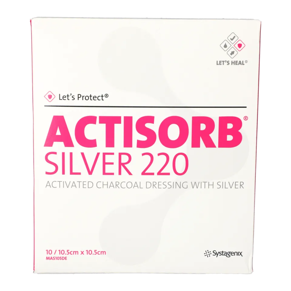 Pansements antimicrobiens utilisés dans la cicatrisation des plaies. Les pansements actisorb sont faits à base de charbon actif et d'argent pour réduire la formation de germes dans la plaie ou prévenir une infection.