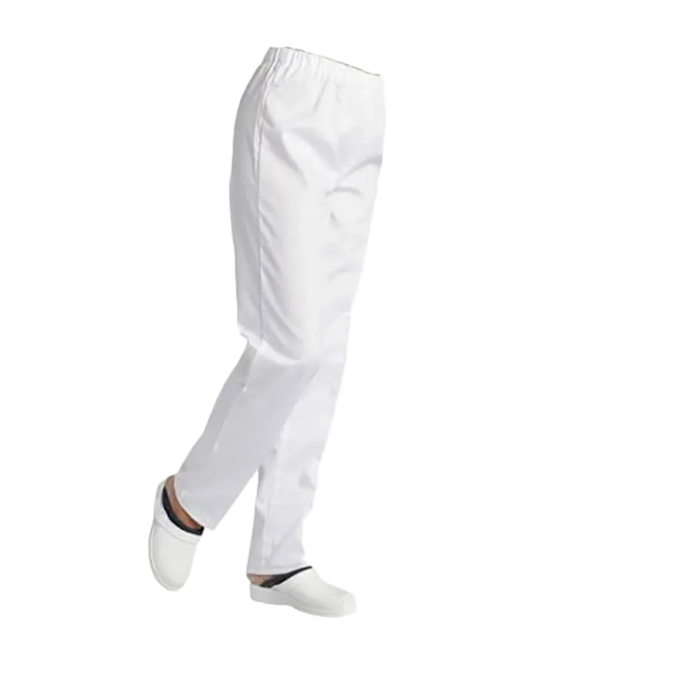 Conçu à partir d'un mélange de polycoton pesant 195 grammes par mètre carré, ce pantalon présente une taille élastique pour un ajustement optimal. Sa composition se compose principalement de 65% de polyester et de 35% de coton. Grâce à cette combinaison, il peut être aisément lavé en machine sans complication. De plus, le tissu est résistant au froissement, préservant ainsi son aspect initial même après plusieurs lavages. La couleur blanche demeurera intacte tout au long de la durée de vie du pantalon.