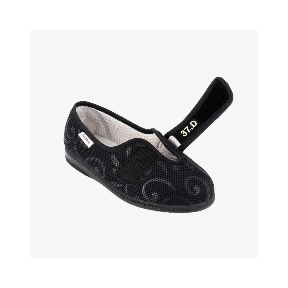 Notre chaussure Thilia assure un confort, une sécurité et une praticité. Elle répond à des exigences de stabilité avec sa semelle anti-glisse et de sécurité grâce à un système de bride réglable qui s'adapte à différentes morphologies et pathologies du pied. Pratique, notre chaussure Thilia est facile à enfiler grâce à une ouverture large. Broderie Pied-Pointure sur chaque chaussure Avant-pied large et cou-de-pied réglable par fermeture auto-agrippante Semelle intérieure amovible.