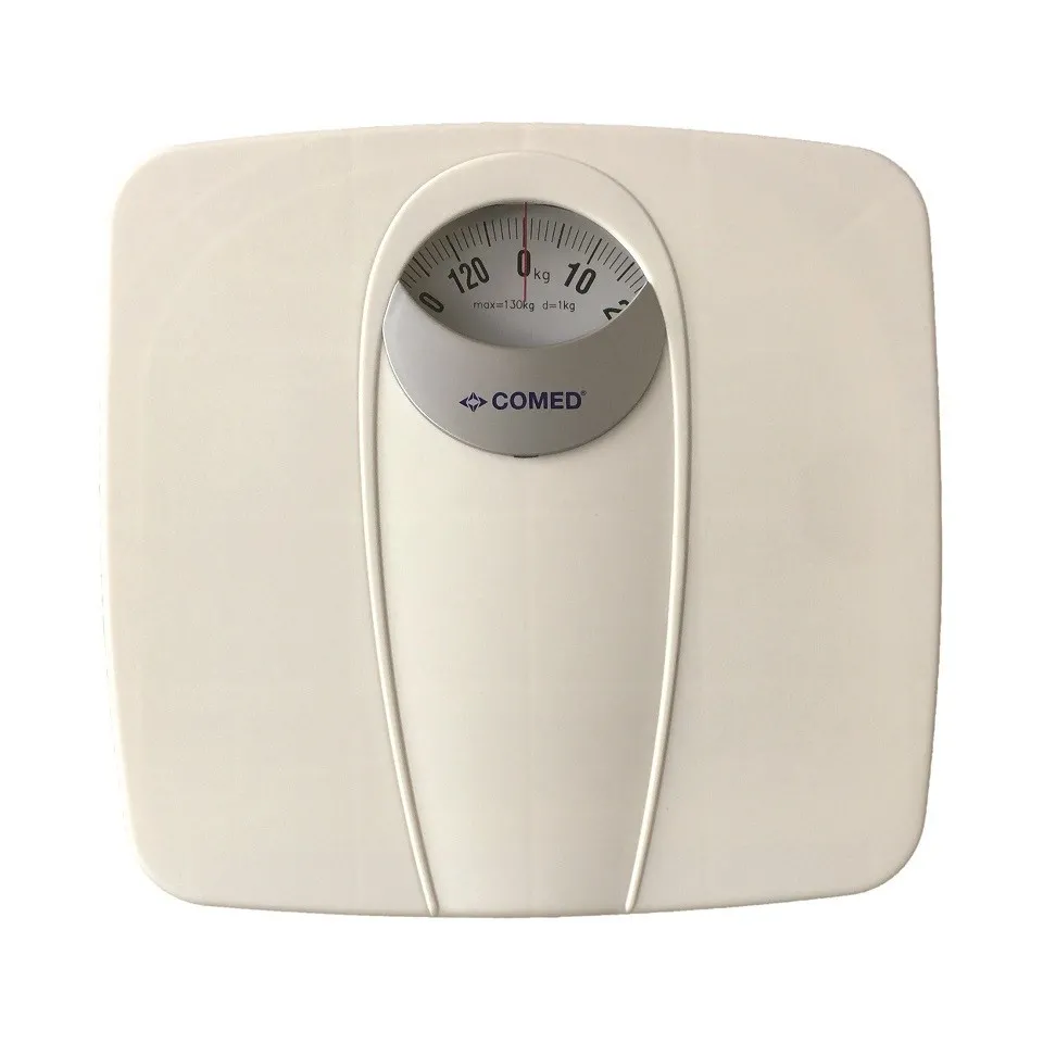 Pèse personne mécanique blanc. Portée : 130 kg. Graduation : 1 kg.