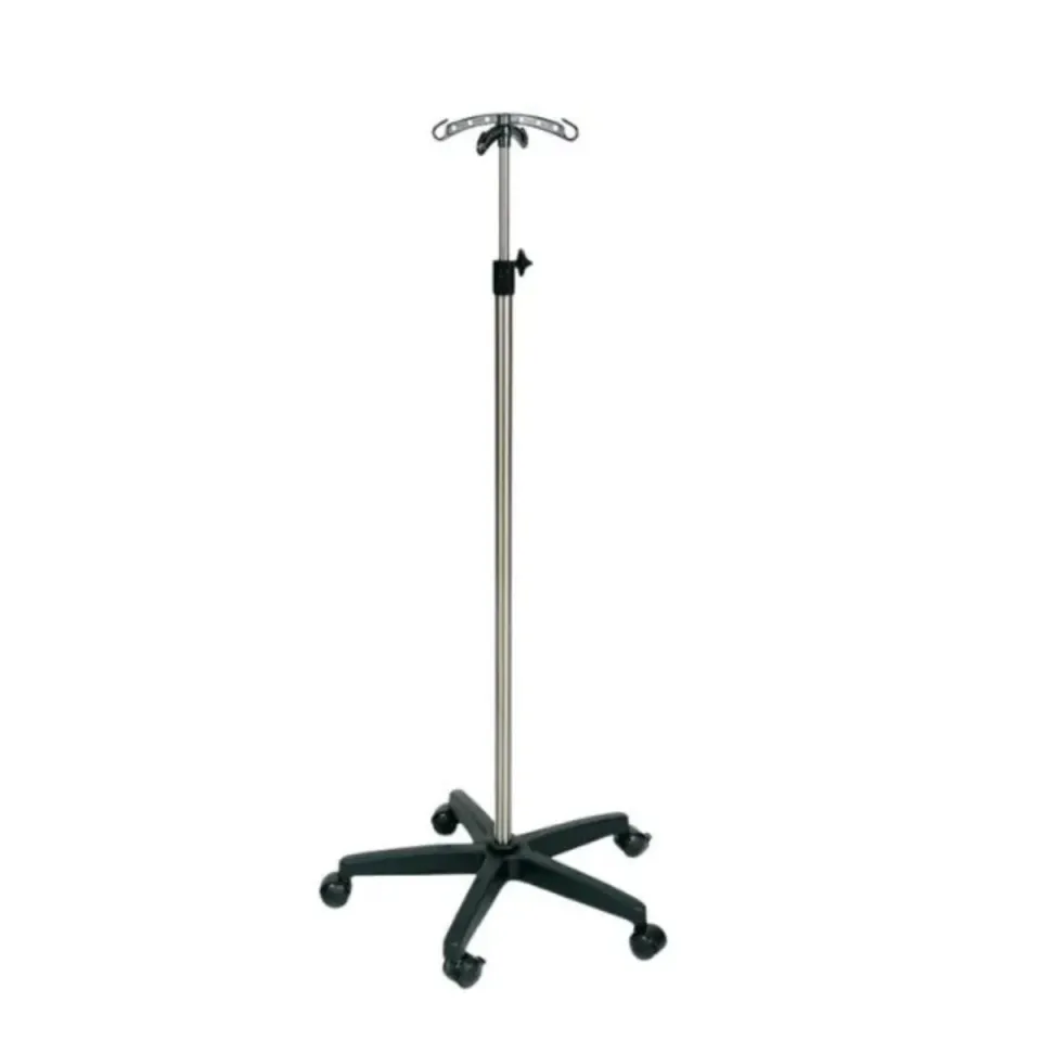 Pied à sérum avec base en plastique stable et légère, offrant résistance et facilité de déplacement