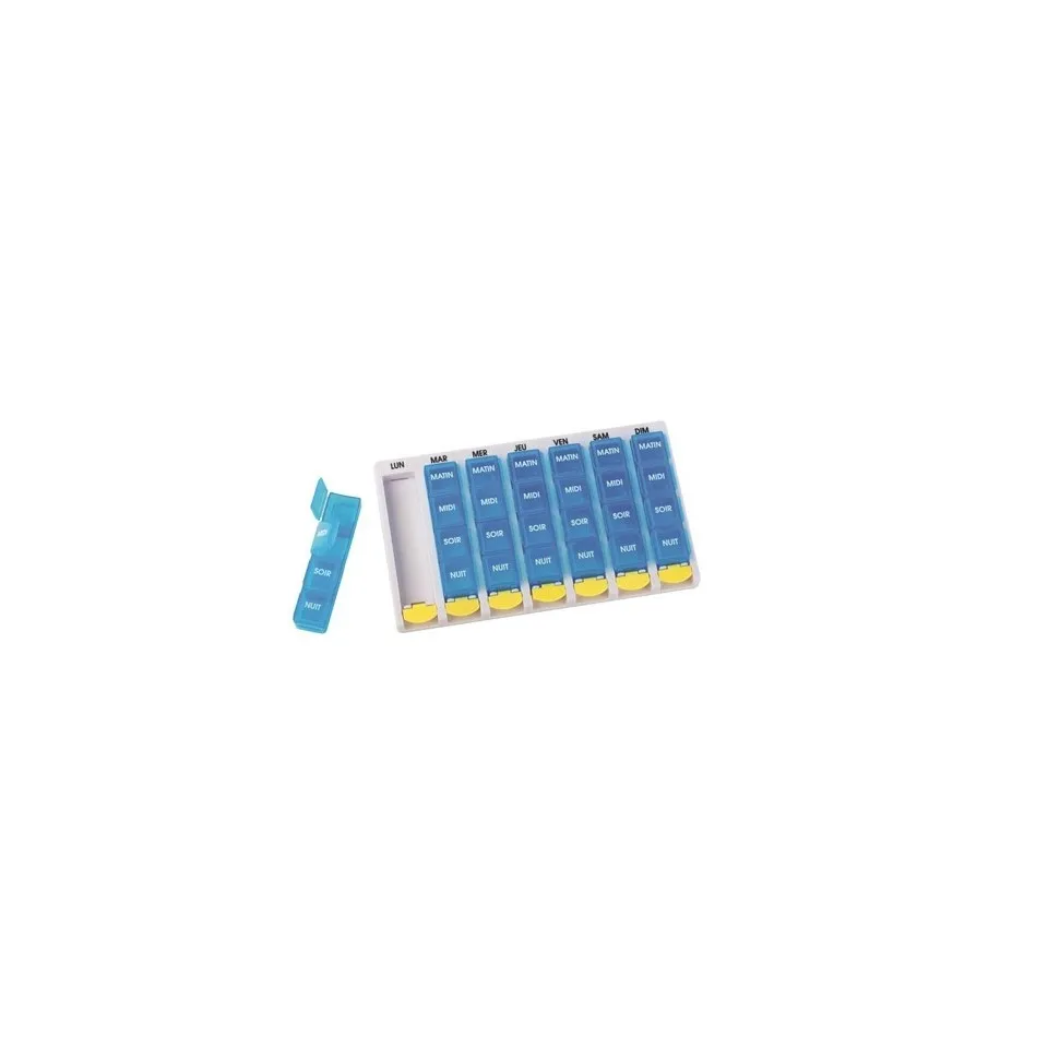 Le pilulier hebdomadaire Pharmatechnics est conçu pour organiser les médicaments sur une semaine entière et limiter les oublis. Chaque compartiment correspond à une période de prise et permet une gestion claire et pratique des traitements quotidiens.