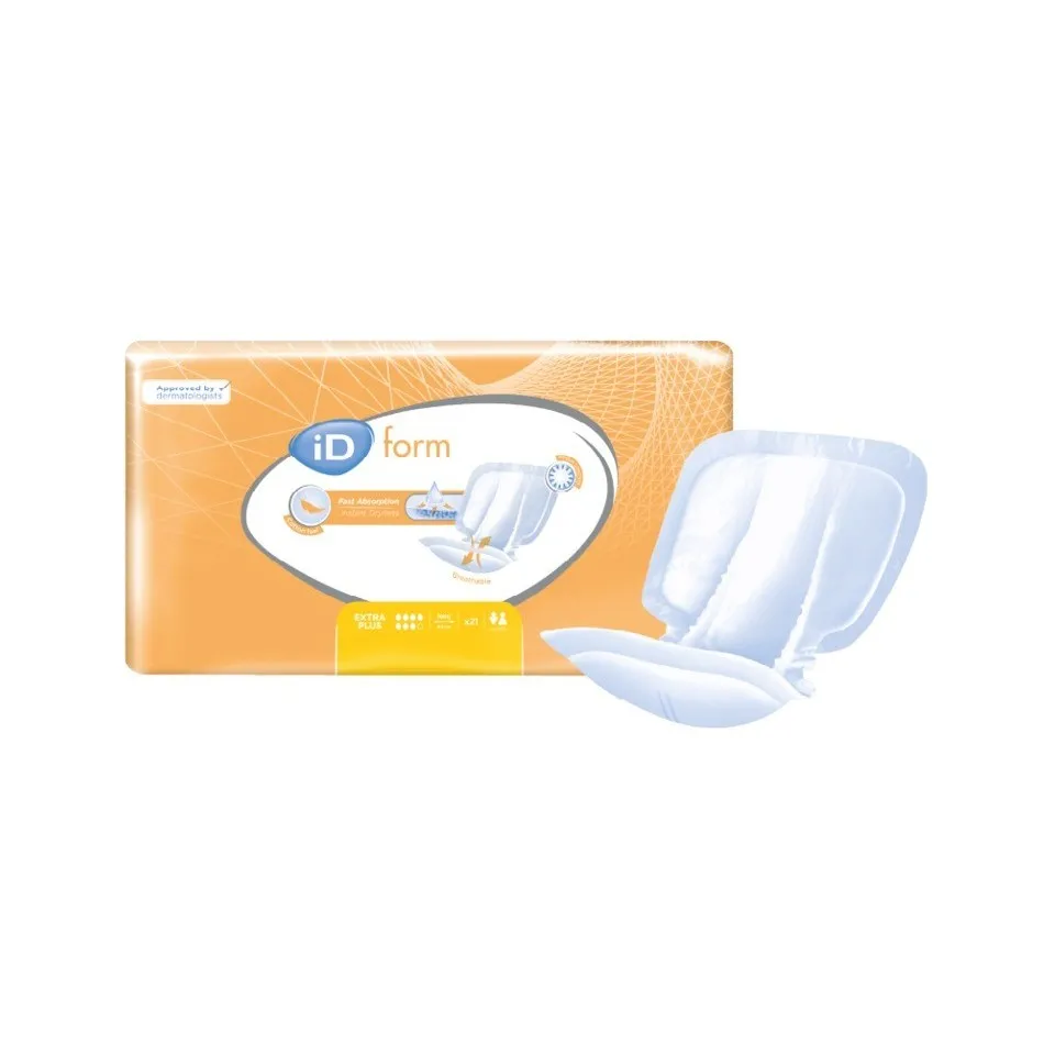 Les protections anatomiques iD Expert Form sont idéales pour les personnes mobiles ou dépendantes souffrant d'incontinence modérée à sévère. Son voile doux et ses nombreux niveaux d'absorption allient confort et sécurité en restant au sec toute la journée. Un double indicateur d'humidité facilite le change au bon moment. - contrôle des odeurs - absorption rapide - barrières de protection anti-fuites - témoin d'humidité - sensation coton - testé dermatologiquement - sans latex
