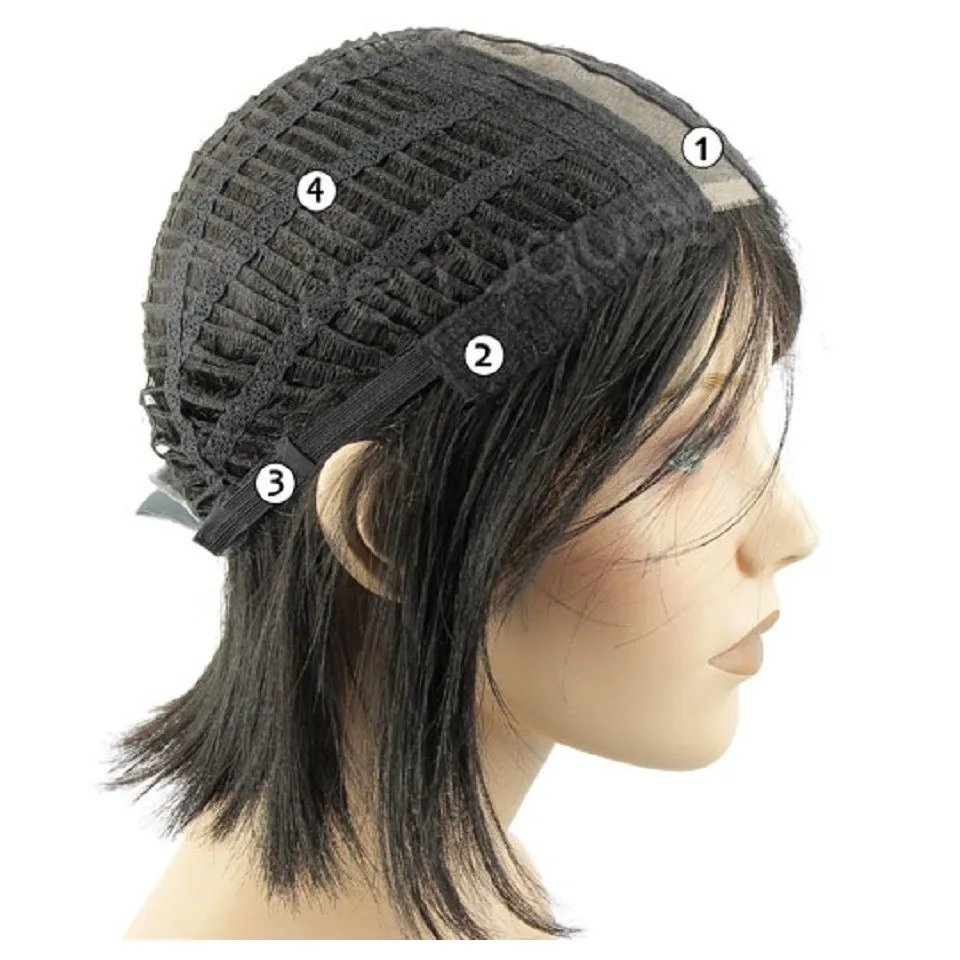 TRESSE AVEC PARTIE EN MONO-FILAMENT RAIE Le confort de ce modèle correspond à l’indice 3/6 soit le confort « Tresse avec une partie en mono-filament au niveau de la raie ». Ce qui signifie que les cheveux sont implantés mécaniquement sur des bandelettes élastiques que l’on assemble ensuite à la main pour donner la forme de la perruque. On y intègre une partie en micro-peau aussi appelée mono-filament au niveau de la raie ou de la bordure frontale. L’ajout de la partie en micro-peau localisée permet de voir le cuir chevelu en transparence pour plus de naturel, d’avoir une raie marquée ou encore un coiffage arrière invisible. Vous pourrez ainsi porter votre perruque en toute discrétion. TRESSE AVEC PARTIE EN MONO-FILAMENT RAIE 1) Partie Mono-filament Raie La partie en mono-filament au niveau de la raie offre un naturel et une transparence du cuir chevelu. Le Mono-filament ou Micro-peau est une fine membrane sur laquelle sont implantés les cheveux individuellement à la main. 2) Pattes en velours Des tiges souples permettent un maintien optimal recouvertent de velours pour un bon confort. 3) Bandelettes d’ajustement Grâce à ces bandelettes en velcro vous pourrez ajuster le bonnet en fonction de votre tour de tête. 4) Bonnet Tresse Appelé également «Montage Machine/Mécanique». Les cheveux sont implantés à la machine sur des tresses et reliés entre eux sur des bandes élastiques en coton. Modèle conseillé pour être porté plutôt occasionnellement.