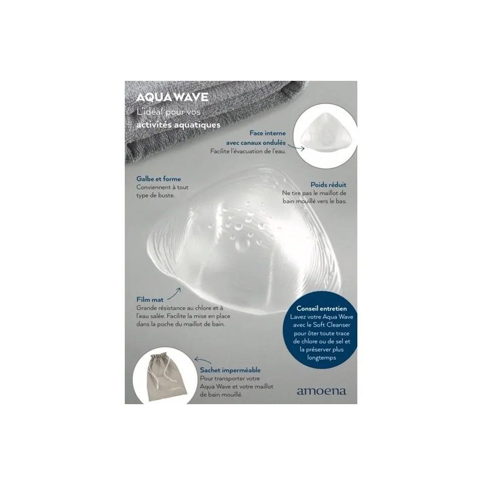 Prothèse mammaire transparente conçue pour la natation, légère, confortable et résistante à l’eau.