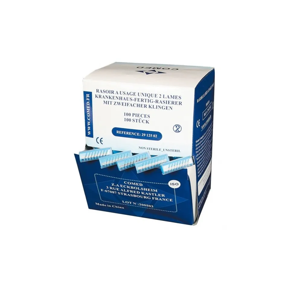 Découvrez notre rasoir manuel à manche plastique, équipé de 2 lames en acier recouvert de téflon pour une glisse précise et confortable. Non stérile et conçu pour un usage unique, ce rasoir offre une solution pratique et hygiénique pour vos besoins de rasage. Optez pour la qualité et la sécurité avec notre rasoir jetable, idéal pour un usage professionnel ou personnel.