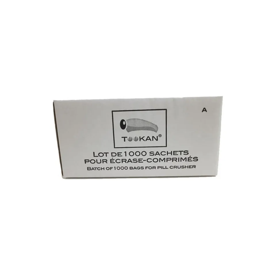 Lot de 1000 sachets compatibles avec l’écrase-comprimé Tookan. Ces sachets à usage unique garantissent un broyage hygiénique, sans effort et sans contamination croisée. Résistants aux produits désinfectants, ils se rangent directement dans l’appareil pour un usage pratique au quotidien.