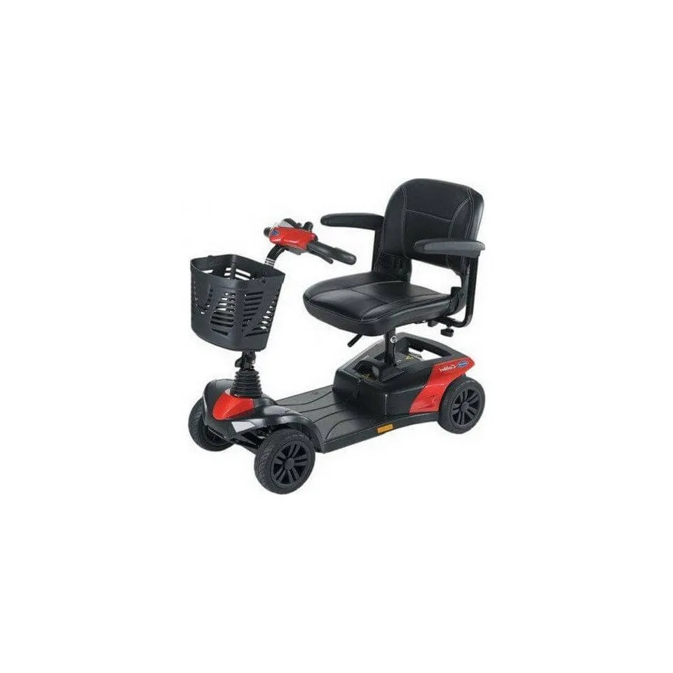 Le scooter par excellence ! Le micro scooter Invacare Colibri transportable est idéal pour les utilisateurs en quête d’indépendance. Il est particulièrement adapté pour une utilisation en intérieur et dans les espaces publics aménagés. Il est disponible en version 3 ou 4 roues. Ses grandes roues et grandes batteries apportent au scooter plus d’autonomie et un meilleur franchissement d’obstacle. Grâce à son système breveté Invacare, ce scooter est démontable facilement et rapidement en moins d’une minute et sans outils ! Il pourra vous accompagner dans tous vos voyages. Le scooter Invacare Colibri est ultra compact avec une largeur et une longueur hors-tout minimales ! Son faible encombrement lui procure une maniabilité optimale. Son assise rembourrée et pivotante sur 360° offre un confort pour l’utilisateur.<br> Moteur : 200 Watts.<br> Assise réglable en hauteur : 390 à 430 mm.<br> Tailles des roues : 200 x 50 mm.<br> Longueur : 1010 mm.<br>