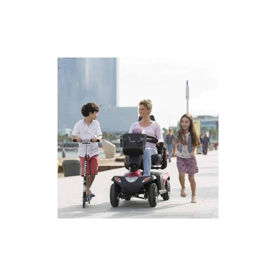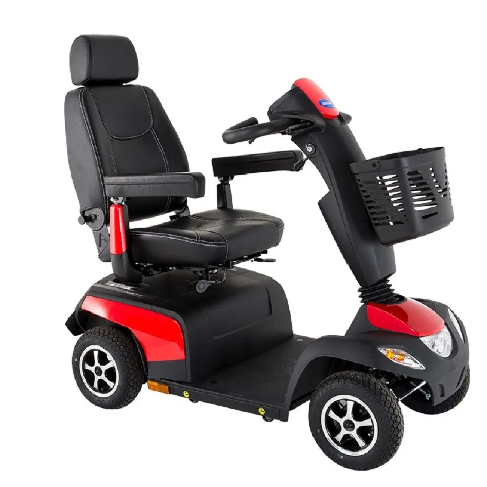 Confort, sécurité, fiabilité et performance Le scooter Invacare Orion PRO est idéal pour les utilisateurs souhaitant se balader sur de longues distances. Il est conçu sur le même modèle que le scooter Invacare Orion METRO mais possède des batteries plus importantes, de meilleures suspensions et des roues de 12’’ pour des utilisateurs à la recherche davantage de puissance. Il est disponible 4 roues. Il possède un écran LCD intuitif facile à utiliser. Il affiche des données utiles pendant la conduite telles que l’heure, la vitesse et le niveau des batteries. Le scooter Orion PRO est équipé d’un système d’éclairage et possède des feux stop qui s’allument automatiquement lors de la décélération et le freinage. Son frein à main assure un freinage immédiat. Lors des virages, le scooter Invacare® Orion PRO décélère automatiquement pour plus de sécurité. Avec un réglage en angle de la colonne de direction, des poignées de direction ergonomiques et un siège rembourré, ce scooter apporte à l’utilisateur un maximum de confort, muni de batteries de 75Ah. Non transportable Assise réglable en hauteur : 440 à 515 mm.Longueur : 1320 mm.