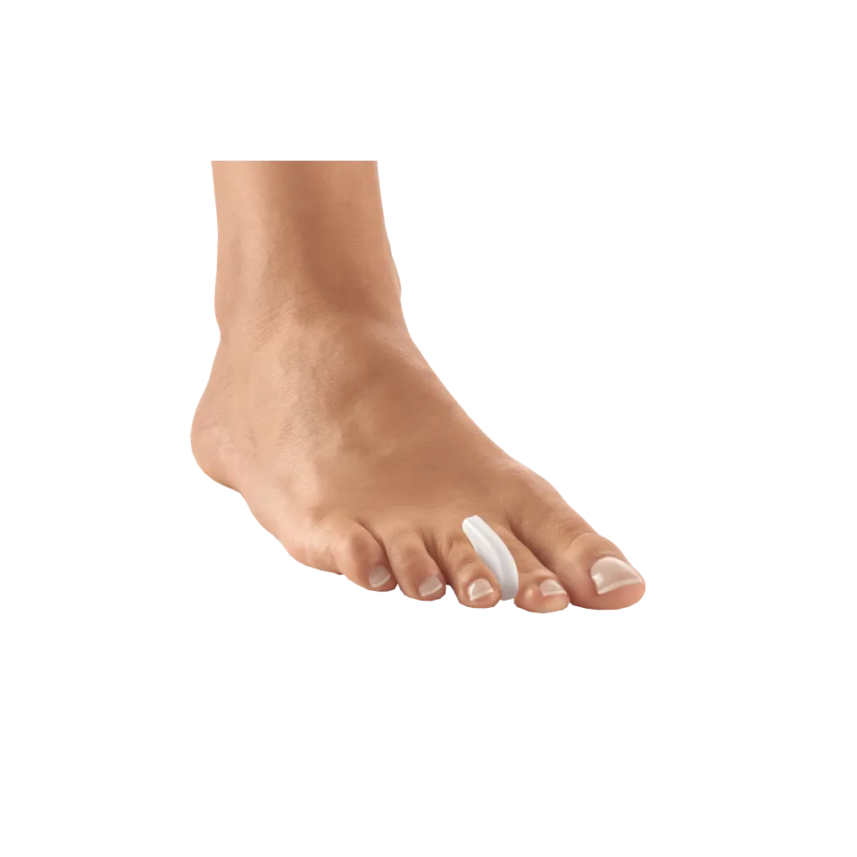 Insérer délicatement le séparateur entre les orteils concernés. Peut être porté dans la chaussure pendant les activités quotidiennes.