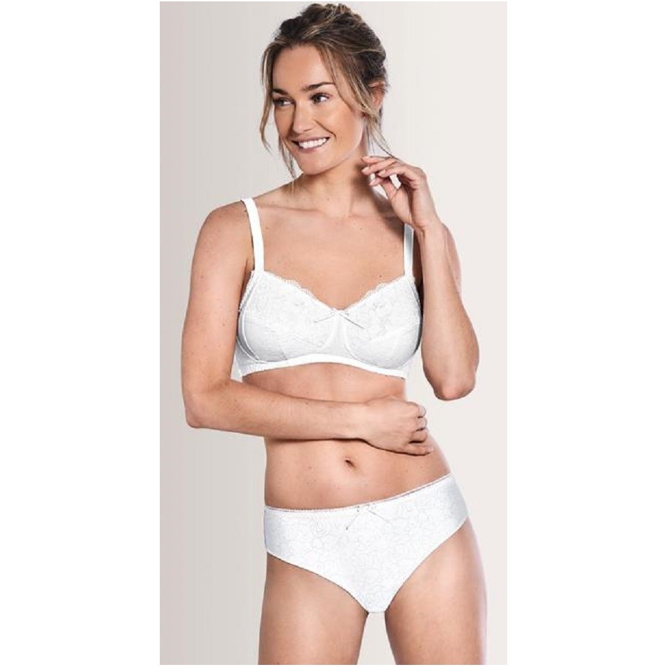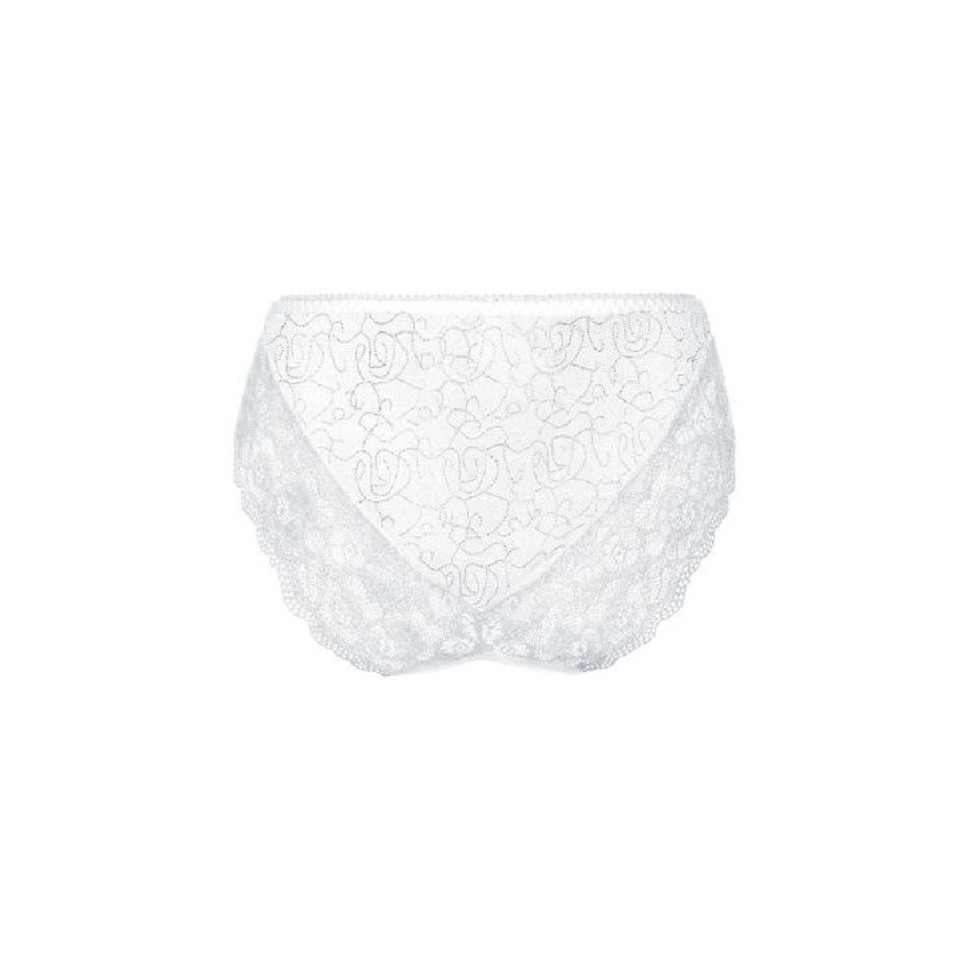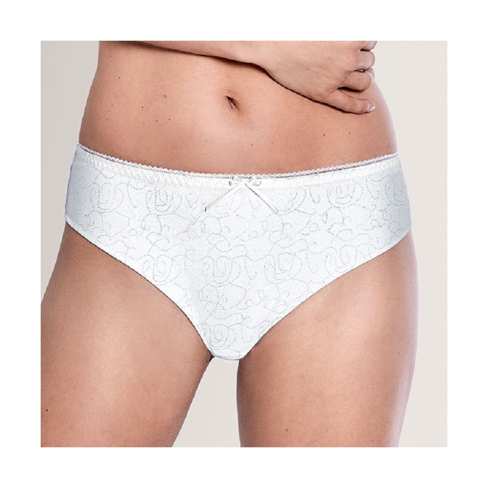 Slip coordonné à tous les soutiens-gorge de la ligne Amanda. Belle dentelle élastique associée à un élégant tissu jacquard. Le slip est ajusté confortablement, ni trop haut, ni trop bas. Ceinture élastique avec une délicate bordure avec picots féminins. 77% Polyamide, 11% Elastane, 7% Cotton, 5% PolyesterLaver à la main et à l’eau froide, Ne pas javelliser, Ne pas sécher en machine, Ne pas repasser, Ne pas nettoyer à sec