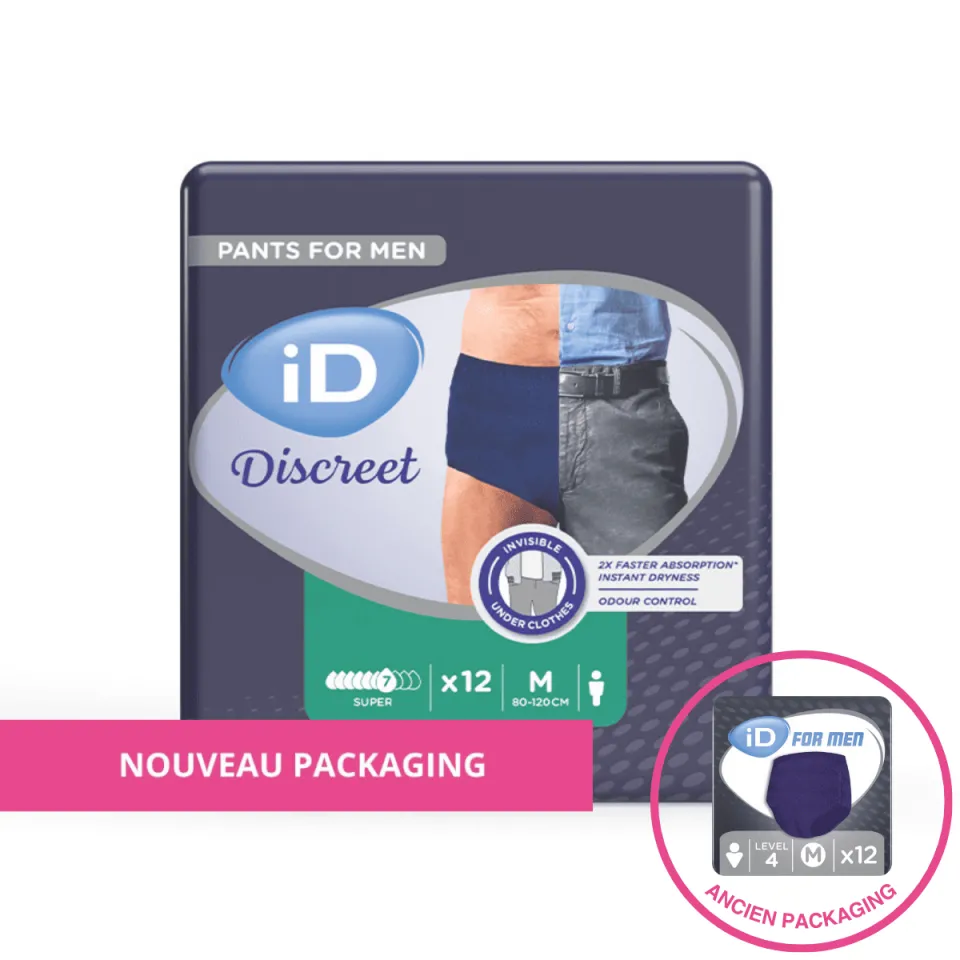 Les Slips Pants Discreet Pants For Men – Super M sont des protections absorbantes spécialement conçues pour les hommes souffrant de fuites urinaires légères à modérées.