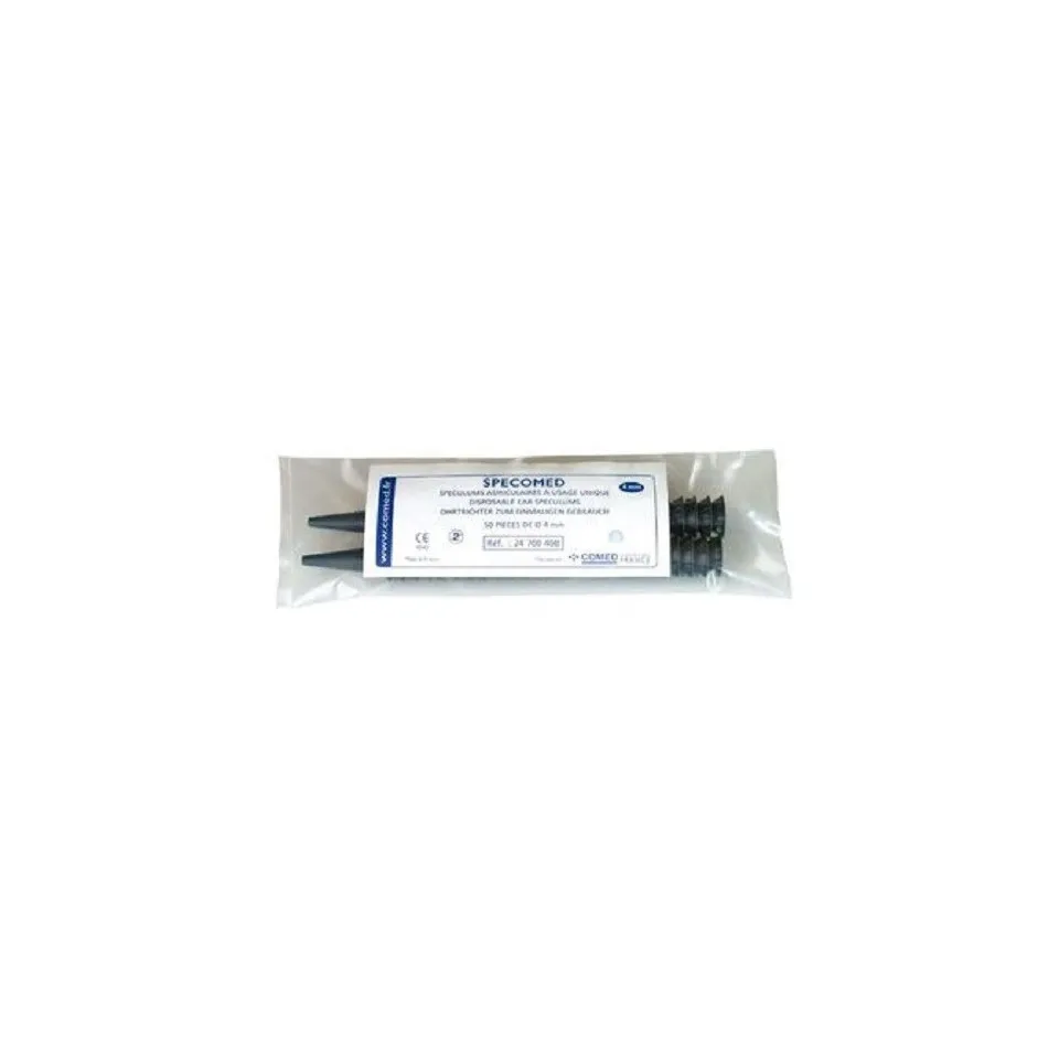 Spéculums auriculaires à usage unique. Fabrication COMED. Boîte de 50 pièces.