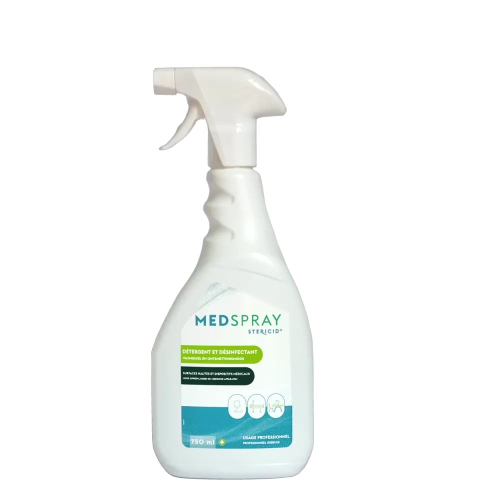 Spray désinfectant MedSpray 750 ml pour un nettoyage efficace de toutes surfaces, adapté à un usage domestique et professionnel.