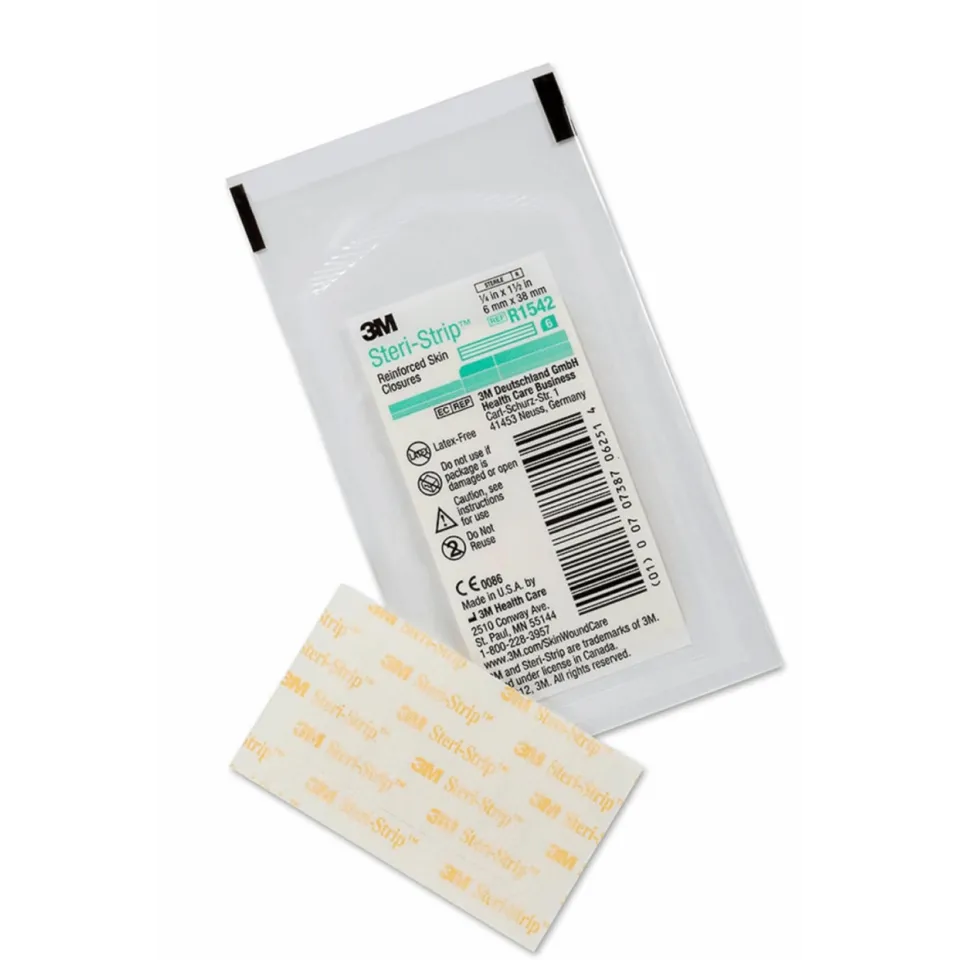 Indiquées pour les sutures primaires non invasives sur plaies aigües (coupures ou incisions chirurgicales) ou en renfort combiné avec des fils ou agrafes, les sutures cutanées adhésives stériles Steri-Strip™ permettent une cicatrisation rapide et esthétique.