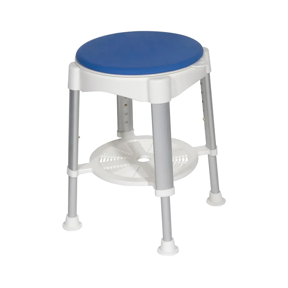 Outre sa capacité de rotation, le tabouret est doté d'une tablette intermédiaire rigide qui vous permet de poser des objets pour la douche, vous offrant ainsi plus de praticité pendant vos soins. Les patins antidérapants de 6 cm de diamètre assurent une excellente stabilité, même sur un sol mouillé. Idéal pour les personnes ayant des difficultés de mouvement ou d'équilibre, il facilite l'entrée et la sortie de la douche, tout en évitant les risques de chutes.