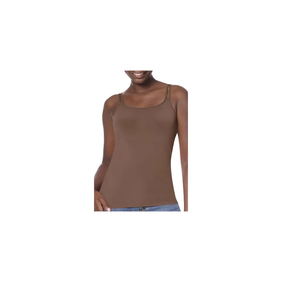Fines bretelles doubles réglables dans le dos pour un ajustement parfait. Finitions douces et nettes qui n’irritent pas la peau Le modal ultra-doux ne peluche pas, ne décolore pas et rétrécit moins que le coton Avec son décolleté pudique, l’encolure arrondie présente un look tendance pour le quotidien Brassière à poches intégrée, avec bonnets légèrement rembourrés pour un joli galbe et un bon maintien : offre un maintien moyen Longueur confortable, ajusté au niveau de la taille