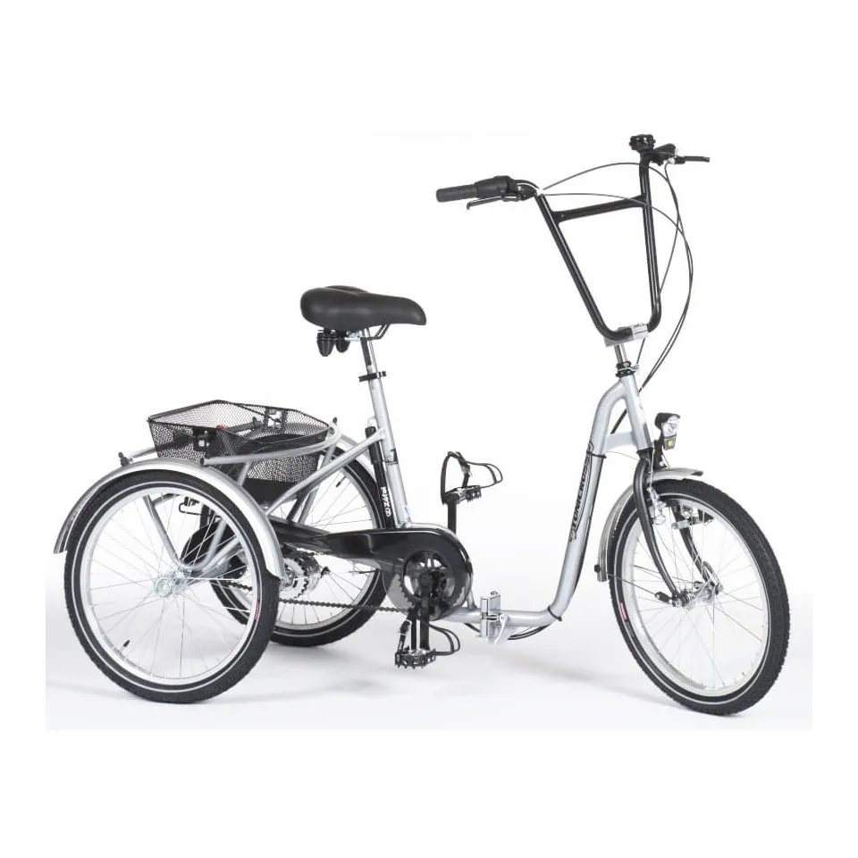 Le tricycle TONICROSS LIBERTY fait partie de la génération de tricycle urbain parfaitement adapté pour les adolescents et les adultes. Il est destiné aux utilisateurs ayant une hauteur d'entrejambes comprise entre 66 et 90cm. Le cadre est de couleur gris métallisé et concernant la fourche, vous pouvez choisir entre une déclinaison de 7 couleurs différentes. Le Tonicross Liberty est équipé d'accessoires haut de gamme tels qu'un porte-bagages avec panier arrière amovible, un frein tambour arrière, un différentiel, un éclairage route, un garde-boue et un moyeu 3 vitesse indexées avec roue libre intégrée.